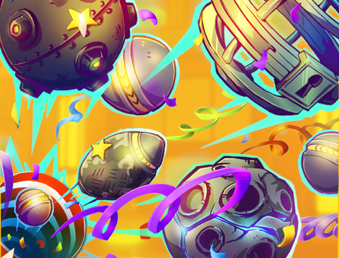 Last but not least, my favorite new playlist announced so far, Party Team KO. When you see the “Party” moniker added to a playlist, that means you won’t find any Basic Balls. Instead, EVERY BALL THAT SPAWNS IS A SPECIAL BALL. Ever wonder what Rooftop Rumble would be like with ALL Cage Balls? Or how about epic sniper battles while riding atop cars in Knockout Roundabout with ALL Sniper Balls? Try not to get dizzy and barf as Curve Shots whirl all around you in Galaxy Burger with ALL Multi Balls. Sometimes you’ll even get ALL Special Balls as the loadout, so get ready to use a Moon Ball to avoid a Bomb Ball explosion targeted at your Caged teammate! Party Team KO is a wild ride, but it’s also a great way to learn the ins and outs of the different Special Balls and play becomes strategic in totally new ways after the shock wears off of seeing that many Special Balls active at once.