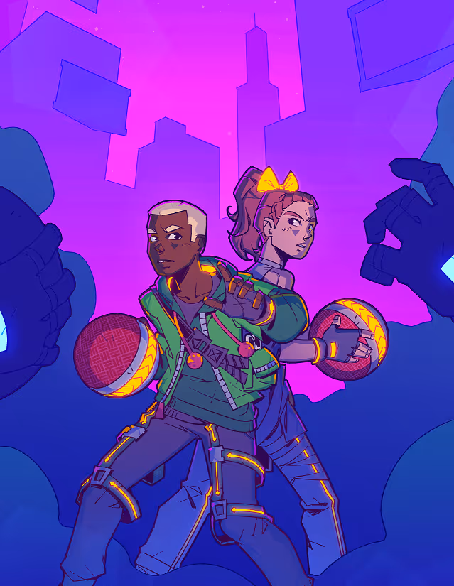 Download the free ruleset and let your creativity take charge as you form allies, find rivals and flesh out your corner of Knockout City with stories between your brawlers. Collaborate to come up with each brawler’s traits, then act ‘em out in character-driven roleplay scenes guided by your DJ (that stands for "Drama Judge" here!). Everything you do to stay true to your character will earn Bond Points for powered-up moves when a dodgebrawl battle inevitably breaks out, so don’t hold back: ham it up!