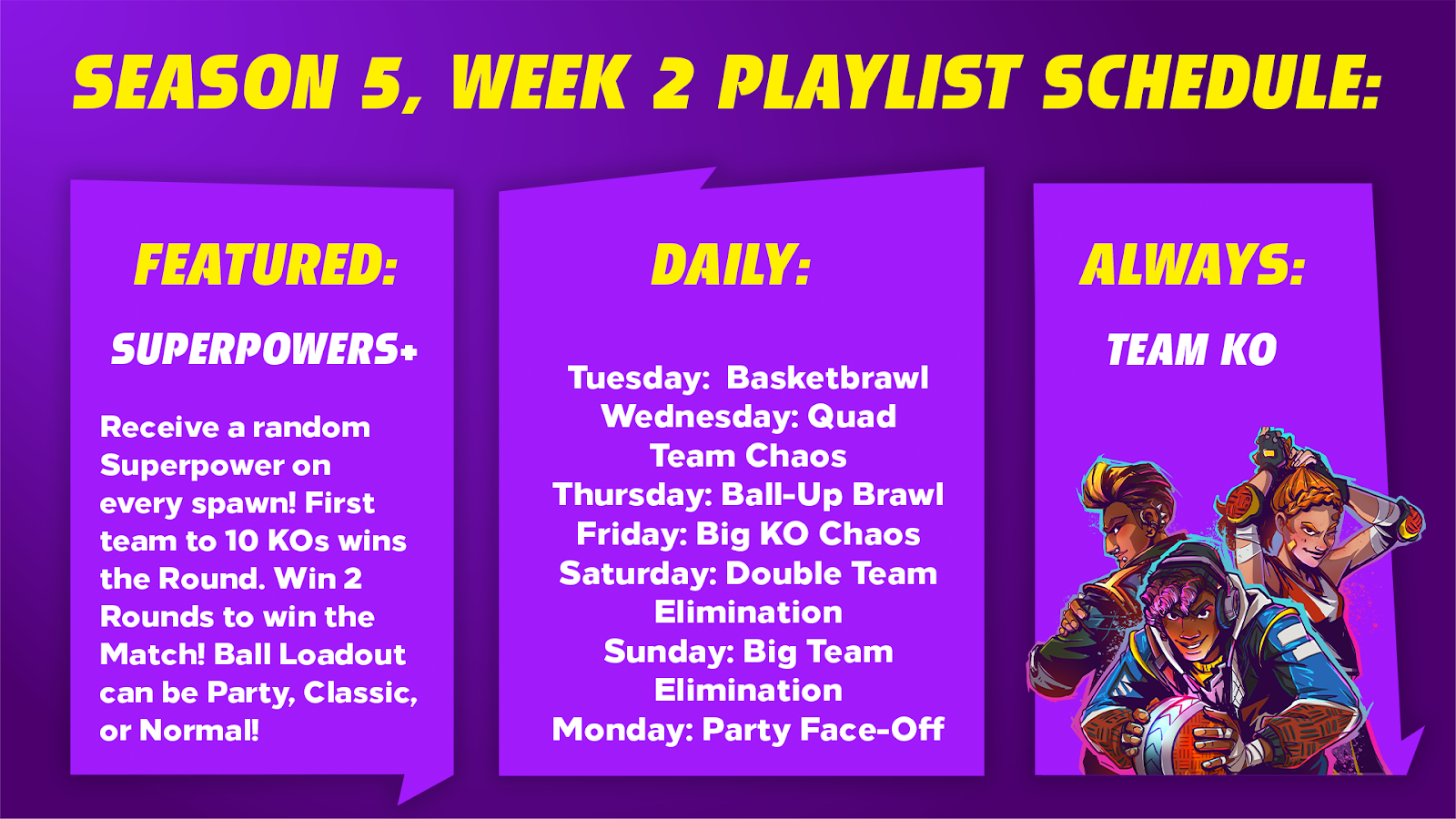 If you thought that the villains had been vanquished from the streets of Knockout City and all our Heroes had retired for good, think again, because it’s time to rise up and duel it out in Superpowers+! For anyone who missed out on this dynamic experience or the exclusive cosmetics that accompanied it in Season 2, now is your chance! You’ll receive a random Superpower on every spawn, and all your favorite Superpowers have returned, with a twist: All Superpowers+ Playlists will have a chance of normal, Party, or Basic Ball loadouts! Plus, if you were paying close attention in our Season 5 trailer, you might have noticed that new VFX have been added to every Superpower, so they are easier to spot when used, and you’ll look incredible when you do.