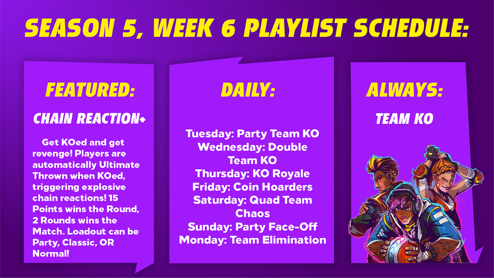 When we asked Perennial Labs test subjects, “Which Season 4 Bundle did you like best of these three?” survey-takers overwhelmingly wrote in “Yes.” You can’t deny that kind of data, so for a limited time, you’ll be able to pick up these three Bundles from Season 4! Roll out as the ultimate fan of Knockout City’s bravest with Knockout City Defense Force, let your alien buddy do the talking with Close Encounter, or run orbits around the competition with the spacefaring favorite, Spaced Out. Check out the Bundles tab in the Brawl Shop for all the details