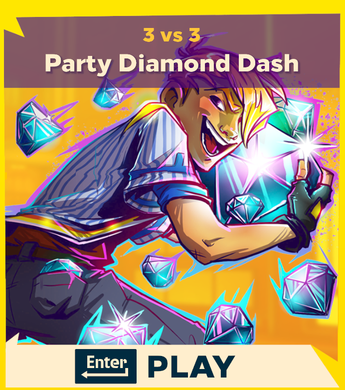 Diamond Dash fans, this is your week to shine like a… well, you know! We’re turning it up a notch with Party Diamond Dash, available tomorrow. Just like before, you’ll KO your opponents and grab their Diamonds, but watch out because it’s all Special Balls with a twist: character throws land you bonus diamonds! First team to 30 points wins the round; two rounds wins the match.