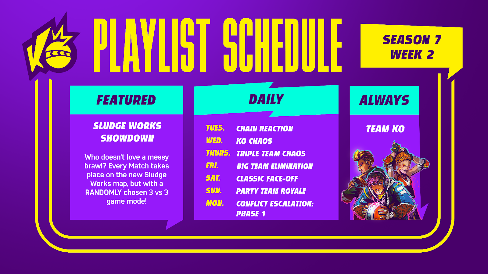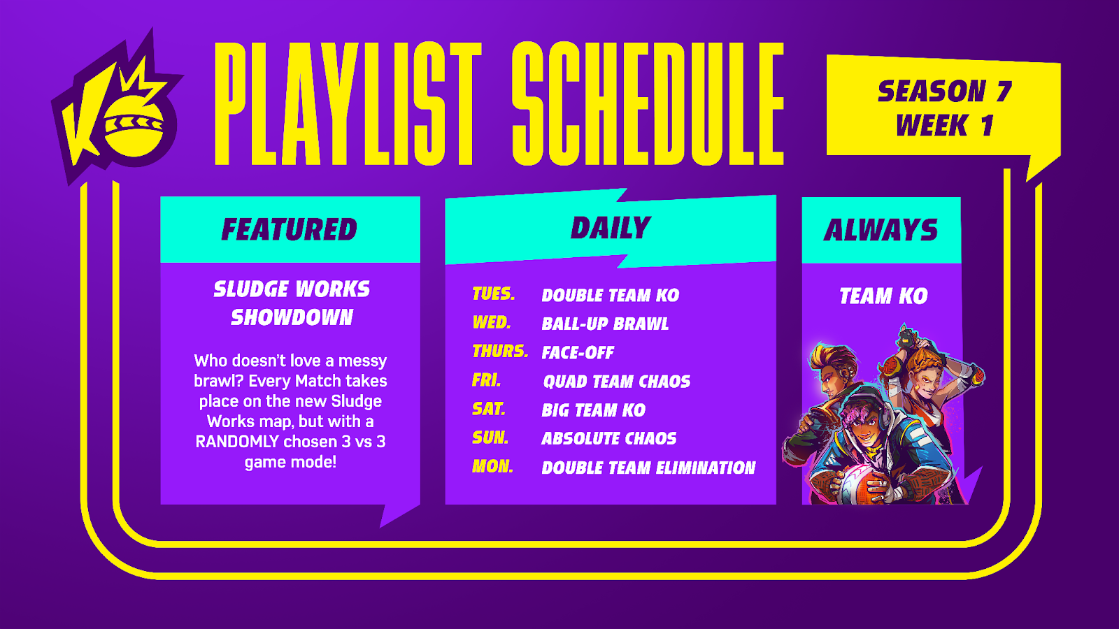 Our first event of Season 7 comes with a whole slew of sludge-y surprises, including a brand new Playlist: Sludge Works Showdown! Win or lose, you’ll be covered in OOZE. Check out the Playlist Schedules for the first and second weeks of Season 7 to prepare for the Dodgebrawling to come . . .