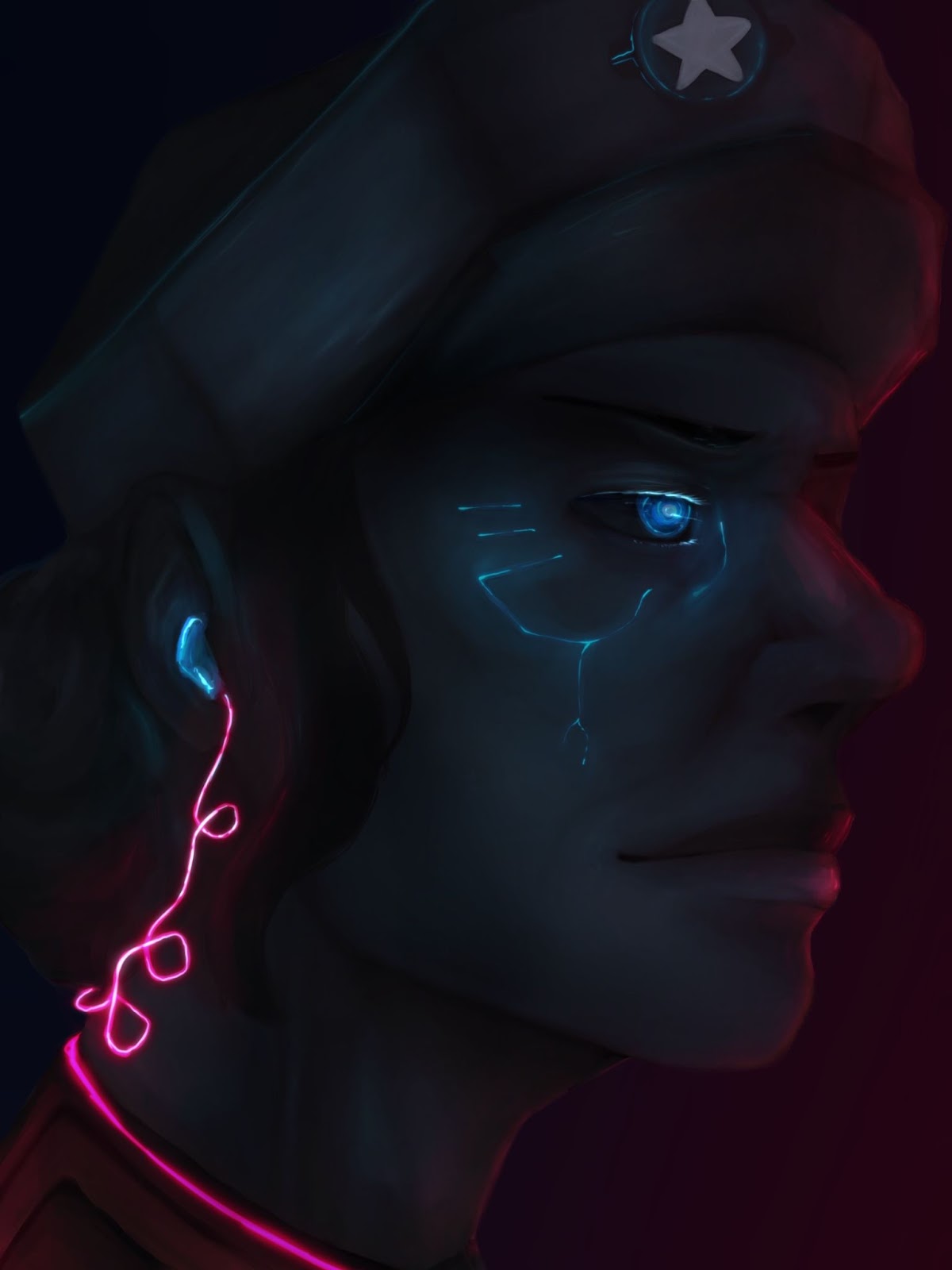 Commissioner Chase…now there’s a mysterious character! Her enigmatic presence is perfectly pinned down in this dark-and-stormy fanart piece, titled "I Am The Law", by SadCactus7. Commissioner Chase’s facial expression and the beautiful use of pink and blue light paint an intriguing picture (pardon the pun!).