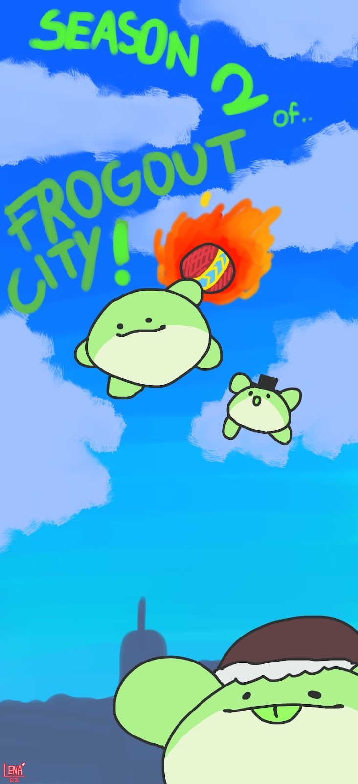 Our fourth and final featured artist is lena, whose piece, “Frogout City Part 2!” totally brightened my day when I first saw it. I mean, who doesn’t love adorable little frogis bouncin’ all over the place??