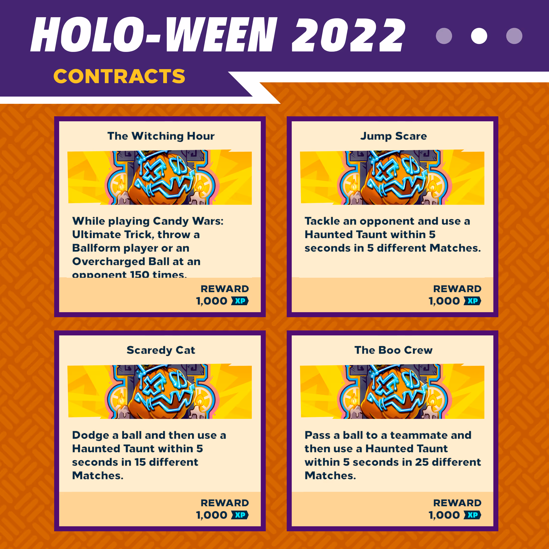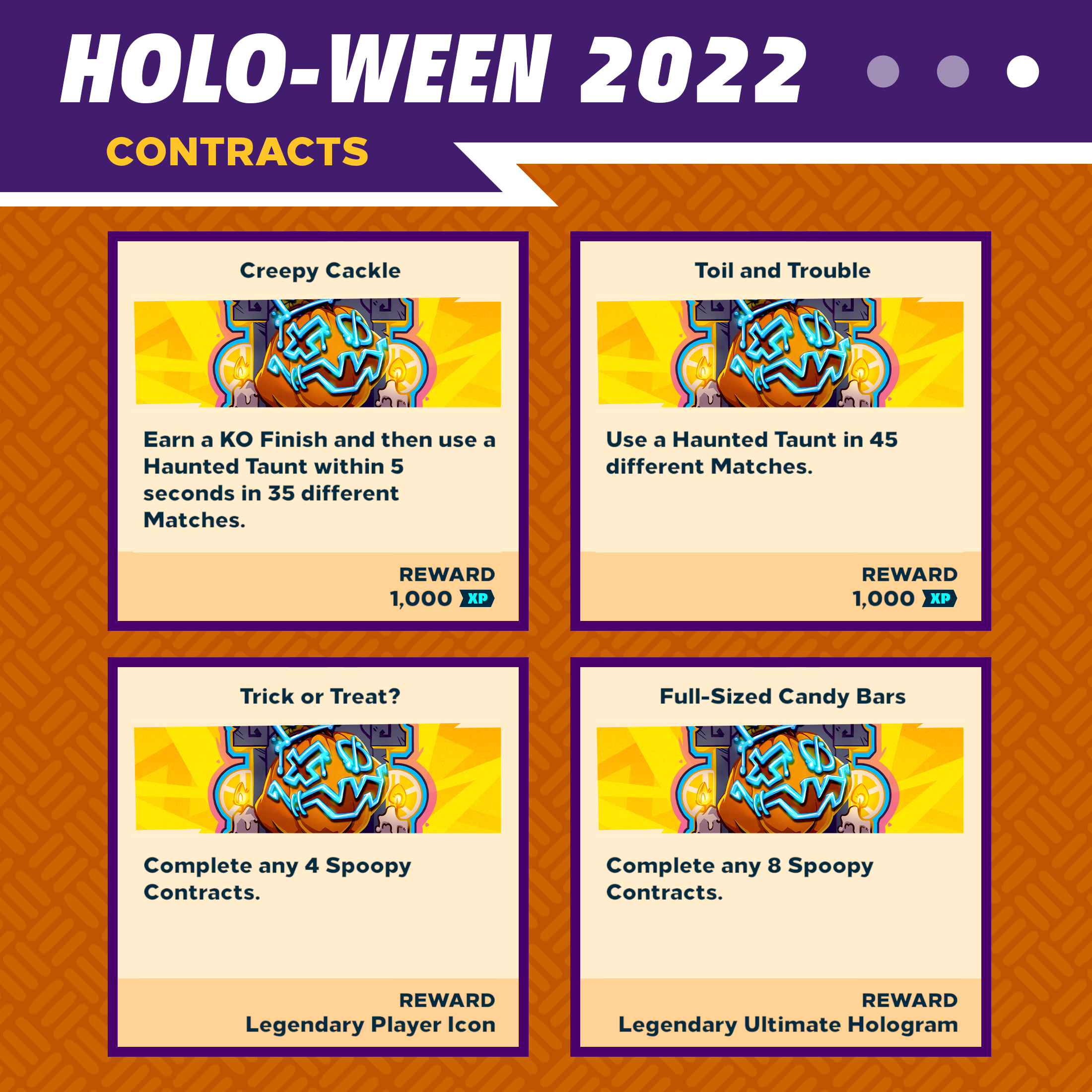 Clean out four Spoopy Contracts on your neighborhood block to jinx your profile with the “Holo-Ween Hiss” Legendary Player Icon. Chow down on eight Contracts and you’ll get a bubbly new brew to play with: the “Splash Potion” Legendary Ultimate Throw Hologram.