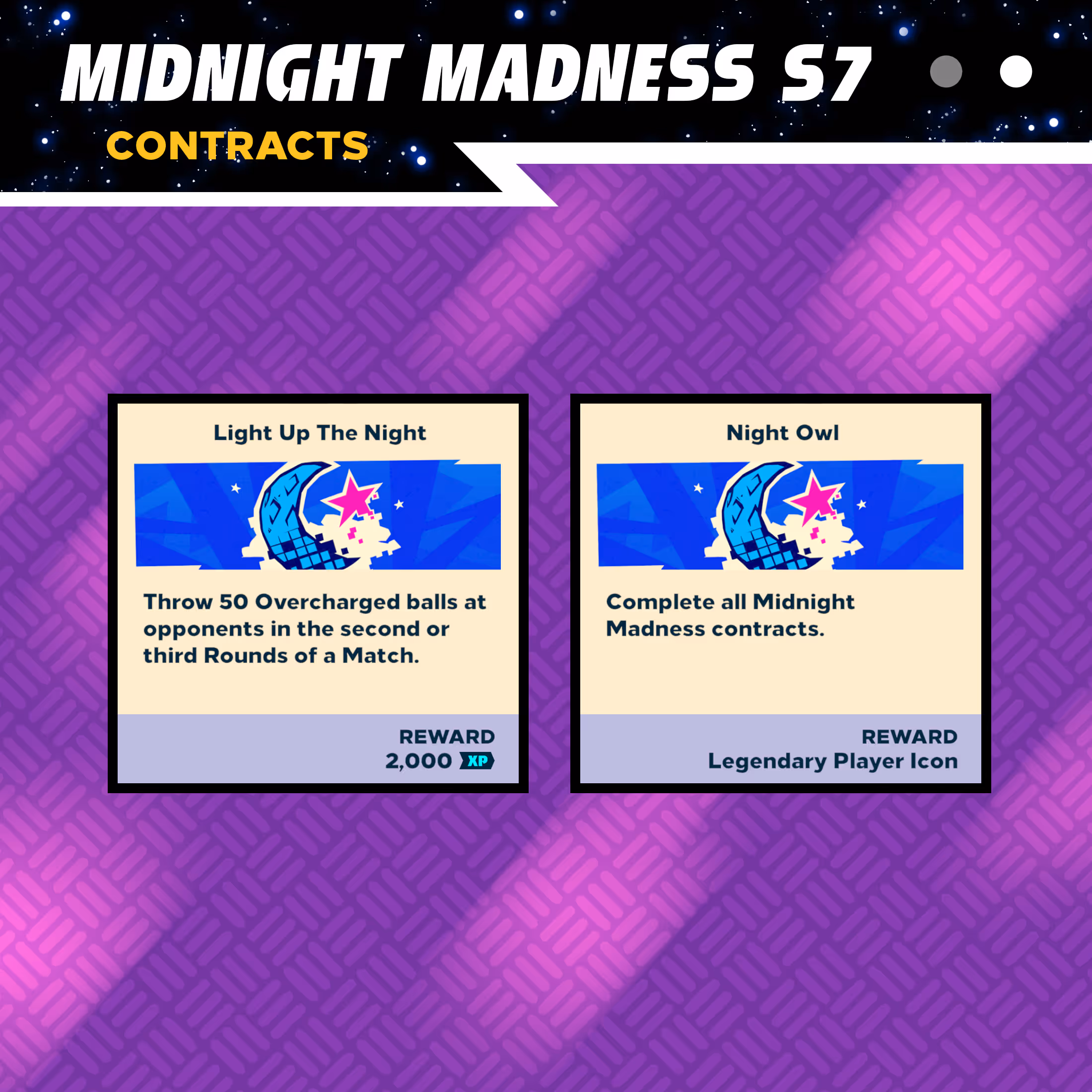 Seems like y'all haven't had enough of the 18 mutations possible in this four-versus-four fracas, so it's back for one week in Midnight Madness! Bring the whole Crew and set off some real fireworks with Wrecking Ball Head, Vampire Teeth, Ballform Boost, and all the rest! Read up on our mutated midseason event blog for all the details on Mutation Rotation!