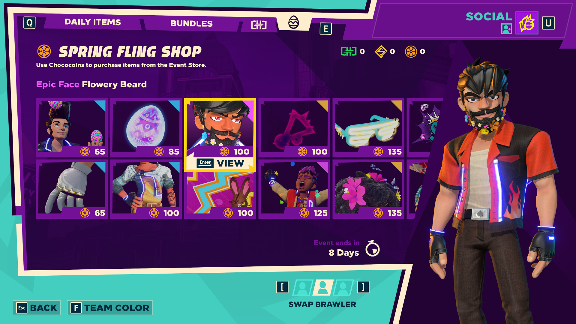 Find styles fresh from the greenhouse like Gloves, Poses, Faces, Hairstyles, and more! You can even trade in your Chococoins for brawler essentials like Energy Drinks, Style Chips, and Holobux!